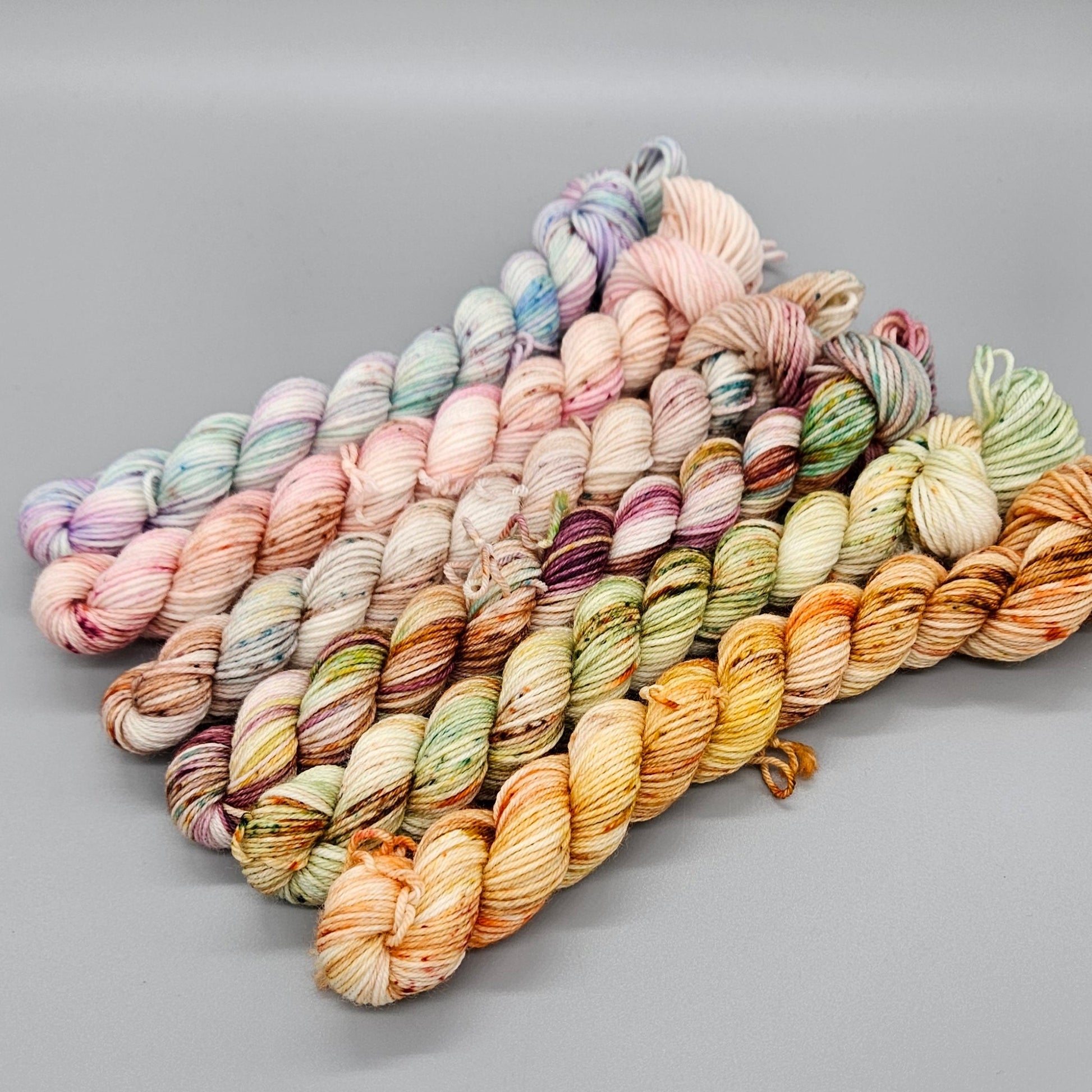 Due to the nature of hand-dyed yarn some variance between skeins can be expected and colourways will dye up slightly differently on different bases and different sized minis.