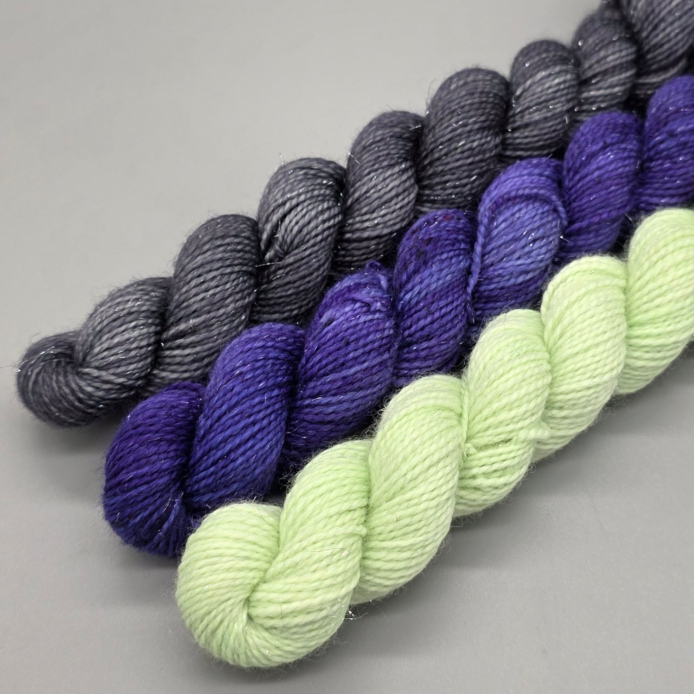 - Sparkle - 75% SW Merino, 20% Nylon, 5% Silver Stellina - 3x20g minis - 4ply